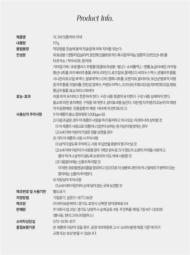 | 1-1. 품목 및 제품명 | 상품 상세정보 참조 |