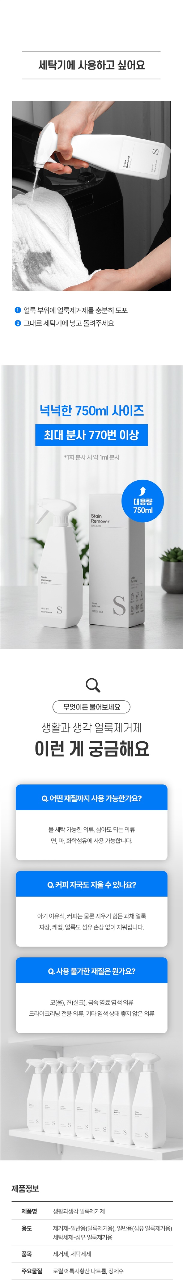 | 1-2. 용도(표백제의 경우 계열을 함께 표시) 및 제형 | 상품 상세정보 참조 |