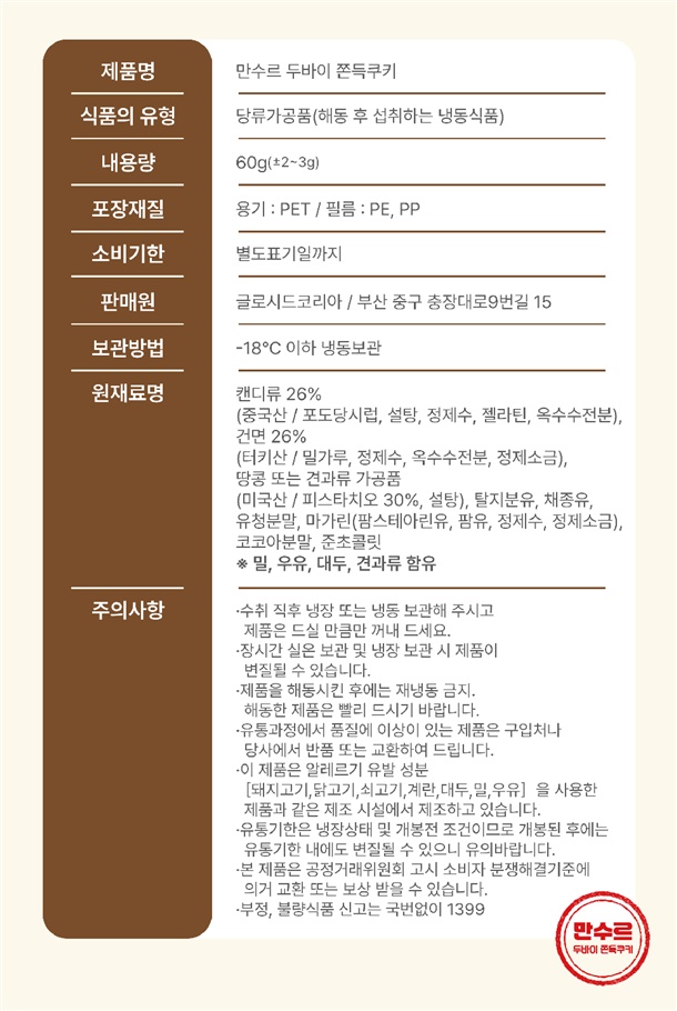 | 1. 「식품 등의 표시ㆍ광고에 관한 법률」 및 「식품등의 표시기준」에 따른 표시사항 | 상품 상세정보 참조 |