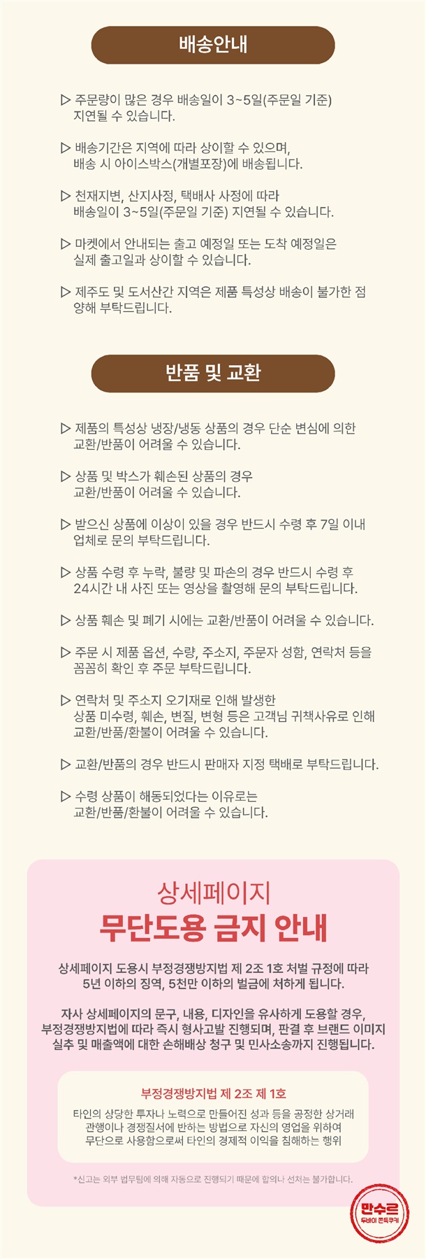 · 상품의 특성상 단순변심,주문착오,주소오기재 등 변심반품 불가합니다.